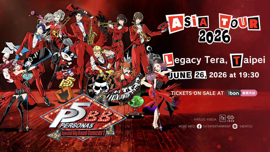 由 ATLUS 發行、全球累積銷量超過 2,200 萬套的經典遊戲《PERSONA 5(女神異聞錄 5)》即將來台出演強勁且動感的現場爵士樂!《PERSONA 5》於2016年發行後獲得業界的極度好評,被評價為是近年最傑出的RPG作品其中之一。今宣佈將於今年6月展開《Persona 5 Special Big Band Concert》亞洲巡迴,台北站將於今年6月26日舉行,演出地點為Legacy TERA。