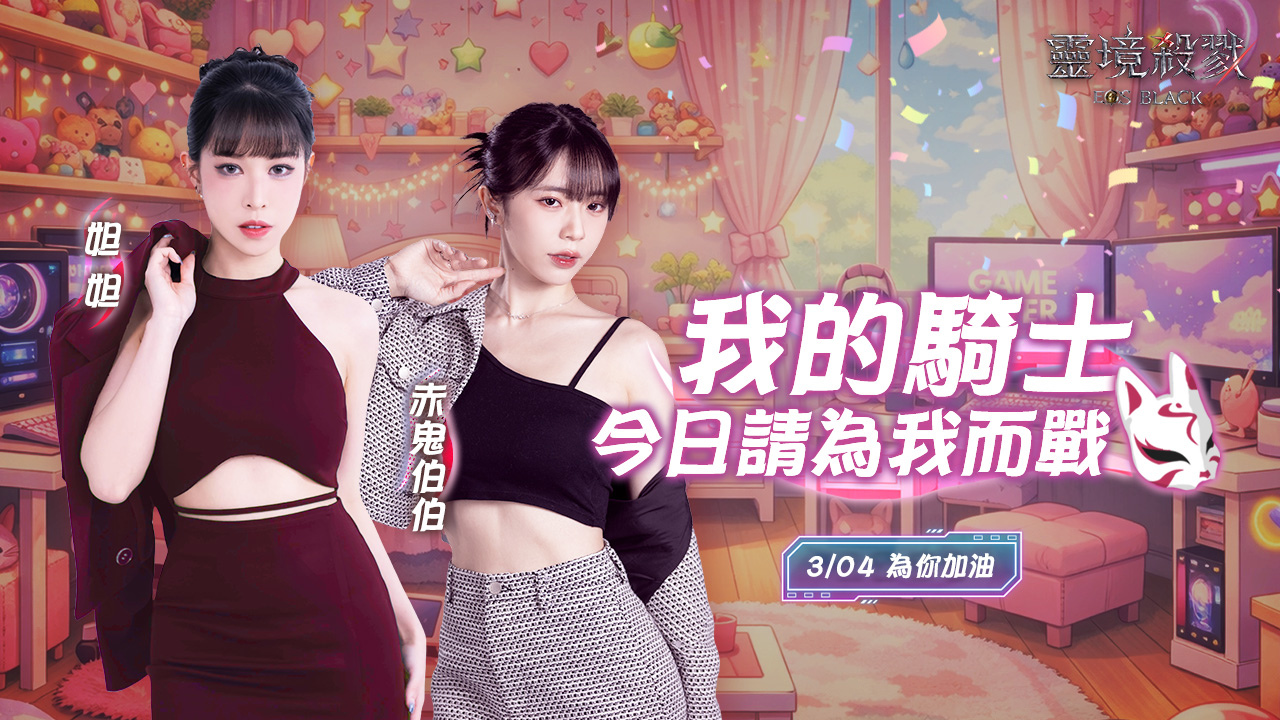 人氣實況主「赤鬼伯伯」與「妲妲」正式降臨《靈境殺戮Black》,攜手推出主題活動「閨密之夜 瘋狂調教」!3月14日晚上10點,兩人將在直播中各自率領騎士團正面交鋒,為支持自己的觀眾爭奪最終勝利!現場參與活動的玩家可選邊加入陣營,守護心儀的實況主、同時對另一方發動攻勢,親身參與這場火花四射的對決!