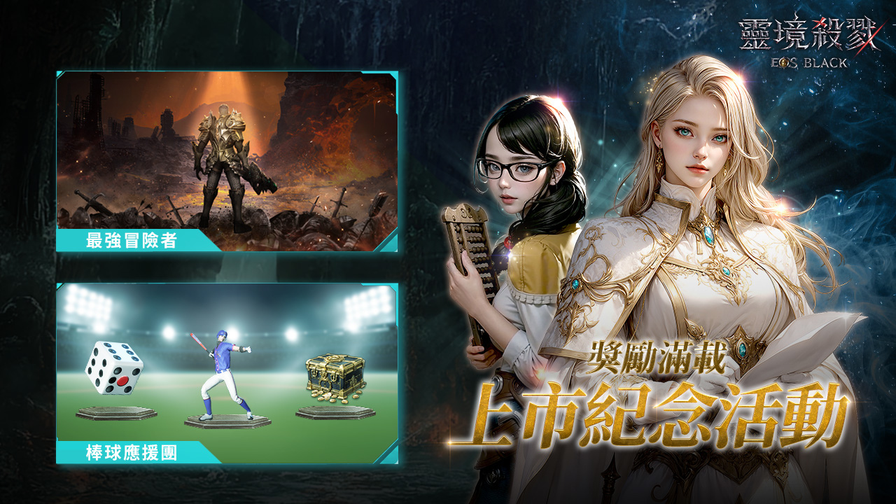 《靈境殺戮Black》已於3月4日正式上市,多項開服活動全面展開:「最強冒險者」競賽將選出各職業巔峰代表,並送上製作英雄級裝備的重要素材;「棒球應援團」活動則透過任務蒐集應援幣,能夠兌換限定稱號「Team Taiwan!」、「棒球球員」靈魂體與「骰到6」寵物,打造專屬應援造型!