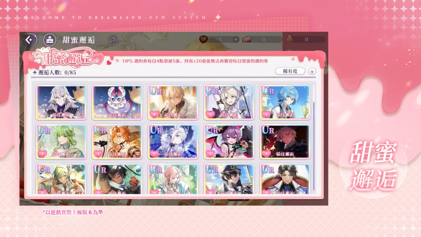 冬天的心動很簡單,就是與他的邂逅~本次更新同步開放情人節限定特殊玩法「甜蜜邂逅」!管理者可在活動介面中選擇心儀角色並使用「甜蜜邂逅邀約券」,解鎖專屬邂逅劇情。本次可邂逅角色包含遊戲初始形象角色,以及黛黛、希德與德米安「榮光暗面」等85位角色 —— 歡迎來到夢樂園,約會的時光永不結束!