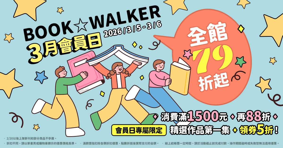 此外,3 月會員日同步推出專屬活動「精選作品第一集領券 5 折」,讀者們可以輕鬆嘗試新作。活動作品包含校園歡樂靈異《惡靈剋星》、最強忍者踏上尋找傳說仙藥之路的《地獄樂》、驚悚系百合戀愛《對我垂涎欲滴的非人少女》、義大利黑手黨 BL《背叛者的情歌》等。3 月 6 日會員日優惠全館 79 折起、滿額 1,500 元再88 折!新會員註冊再送 79 折優惠券,活動期間搭配使用最低可享 55 折購書價。想追動畫原作、補齊續集或開啟全新書單,現在就登入 BOOK☆WALKER,把握折扣一次收藏,讓週末閱讀時光更加精彩。