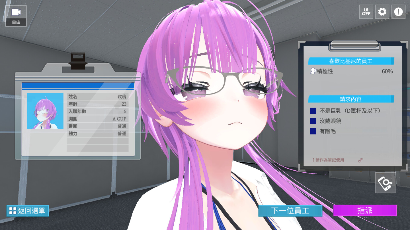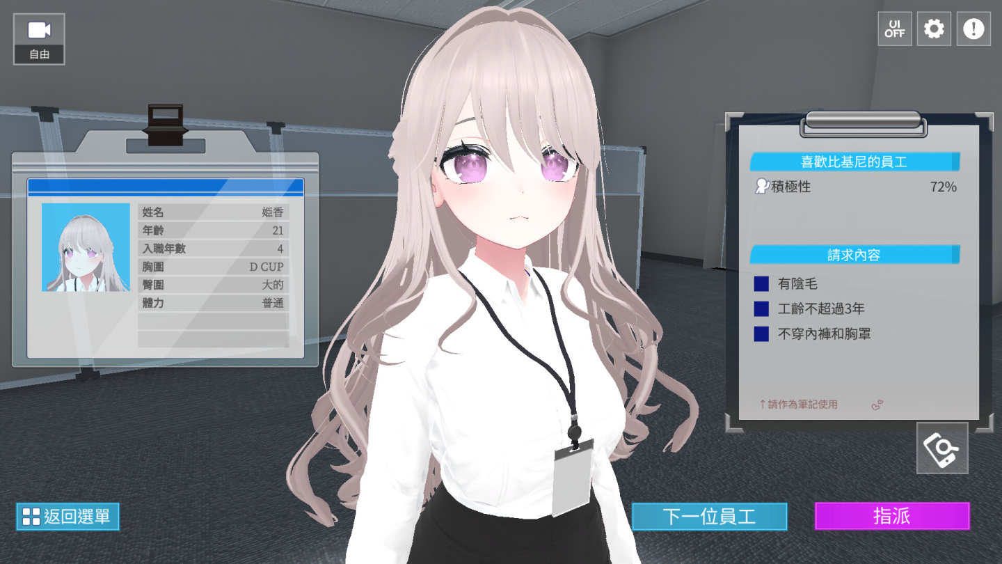 分配的員工可以隨意更改外貌,通過胸部控制,可以自由調整貧乳或巨乳!