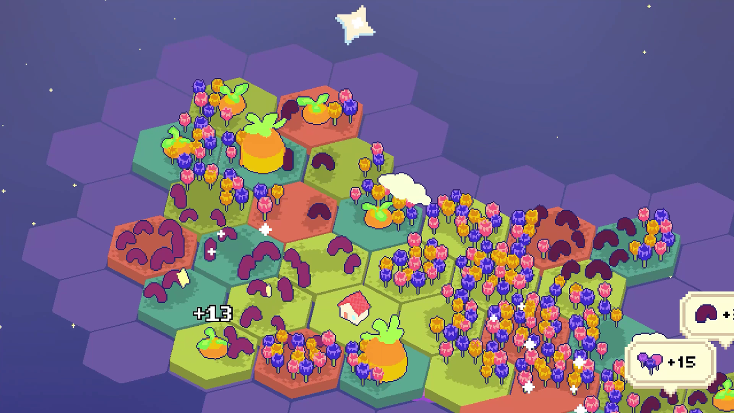 不僅如此,設計軟體還會給你一些建議,比如連接顏色一樣的地塊,或者讓特定數量的山丘樹木連在一起。放輕鬆,請隨心創造繽紛的星球,擺的亂一點也沒關係。星星們只是會有些不同的喜好,你可以完全相信你的電腦搭檔。了解獨特的造物規則,多花一點時間就能拿到更高的評分,這一切都是為了讓整個星系更加舒適完美!