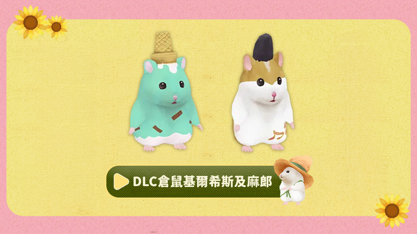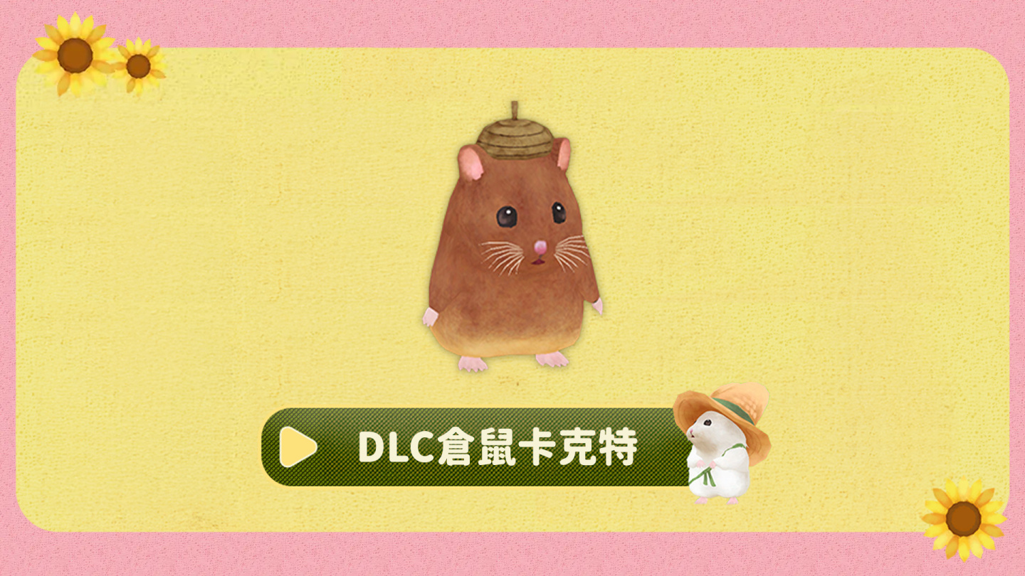 自《箱庭開拓:倉鼠與太陽之鄉》中文版發售日起 3 週內,玩家可於 Nintendo eShop 與 Steam免費下載限時DLC,獲得追加倉鼠 「卡克特」、「基爾希斯」與「麻郎」。中文版已於12日在 Nintendo Switch™ 與Steam®平臺推出,並舉辦慶祝上市活動。