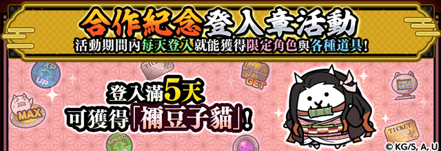 累計登入5天就可以獲得合作限定EX角色「禰󠄀豆子貓」!