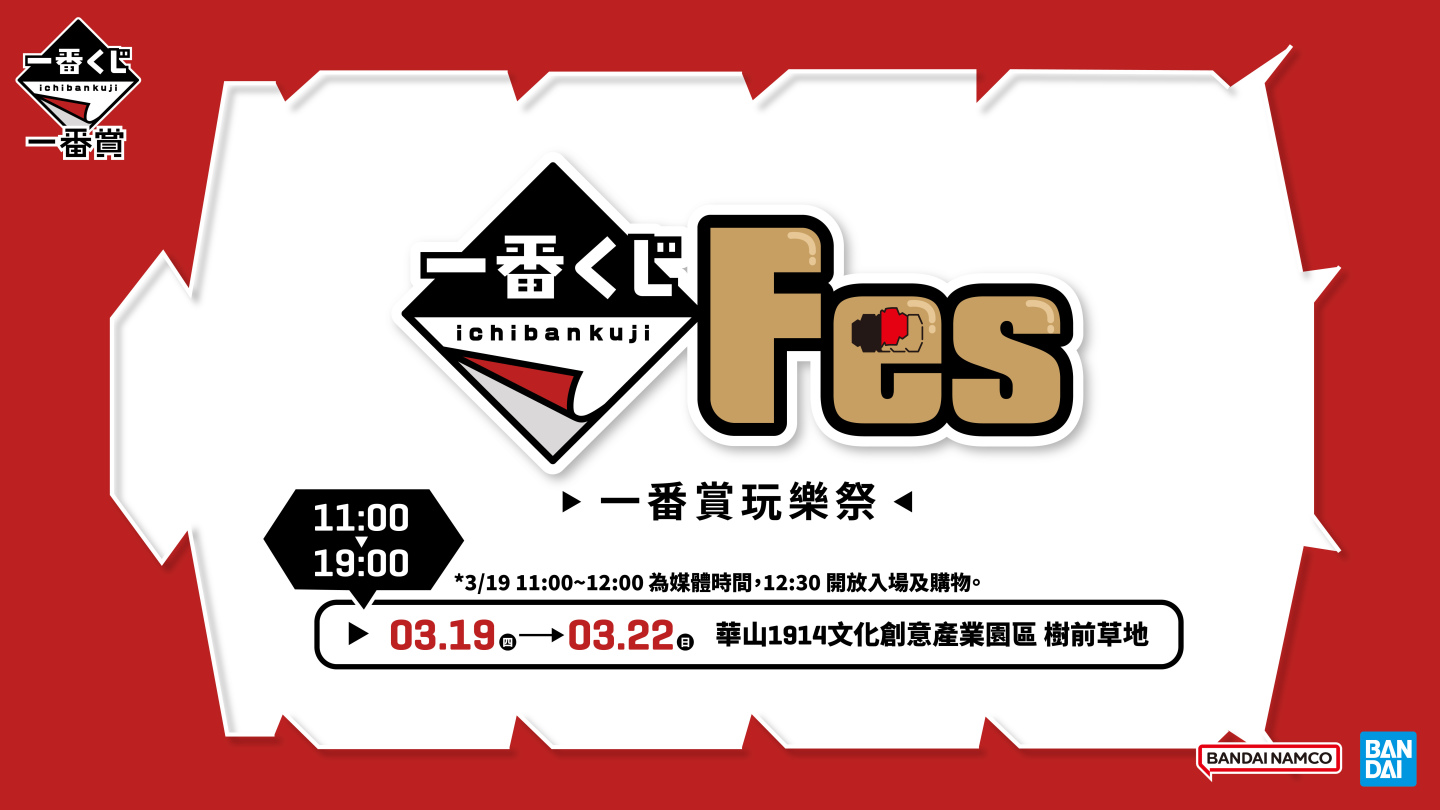 喜愛一番賞的玩家們千萬不可錯過!台灣萬代南夢宮有限公司旗下玩具事業部宣布,將於3月19日至3月22日舉辦全台首場一番賞單獨品牌活動「一番賞 Festival 玩樂祭」。本次活動以繽紛熱鬧的「日本祭典」為主題打造豐富展區,展出培《航海王》、《庫洛魔法使》、《咒術廻戰》、《哆啦A夢》、《哥吉拉》、《幽遊白書》等6款超人氣IP中首度在台亮相的人氣一番賞,並搶先販售最新商品。除了豐富的展品與販售商品,更首度將日本一番賞20周年紀念時展出的「一番賞抽抽樂互動牆」於台灣重現,希望透過充滿趣味的互動體驗,讓玩家感受一番賞帶來的驚喜與歡樂。此外,兩大國民女神阿部瑪利亞、泱泱將於3月21日化身「一日店長」,只要完成指定活動辦法,就可以在浪漫的氛圍下與女神們近距離互動,享受一番賞「一抽入魂」的刺激快感以及與怦然心動的約會時光!
