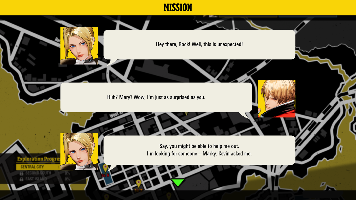 而在「街機模式」中,正在南鎮度假的瑪麗收到有關「秦之秘傳書」和「吉斯的遺產」的消息,並參加由斯特羅海姆舉辦的KOF大賽,故事隨之展開。請盡情享受在各個模式中展開的新布魯·瑪麗的劇情吧。