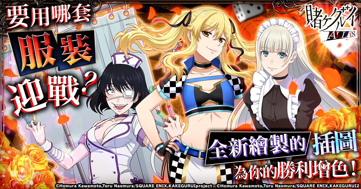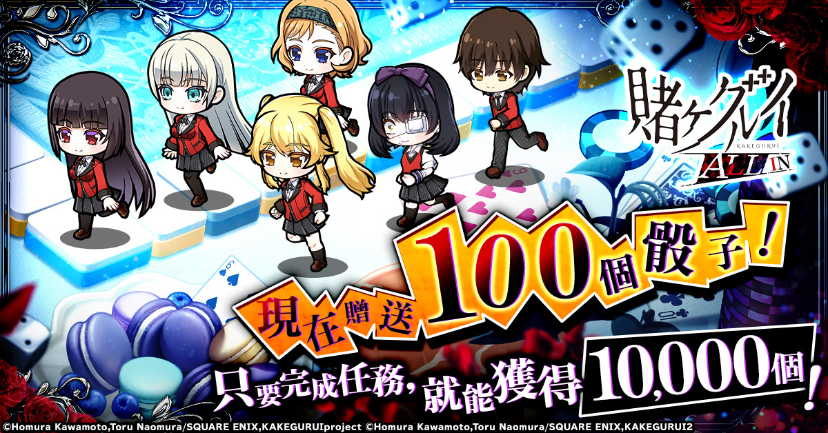 CTW株式會社於遊戲平台G123正式推出戰略大富翁遊戲「狂賭之淵 ALL IN」。以動畫「狂賭之淵」為原作的「狂賭之淵 ALL IN」已正式上線。支援手機、平板、PC網頁瀏覽器,無需下載應用程式。敬請享受只有網頁遊戲才能帶來的便利性,以及充滿戰略與運氣的新「狂賭之淵」遊戲。