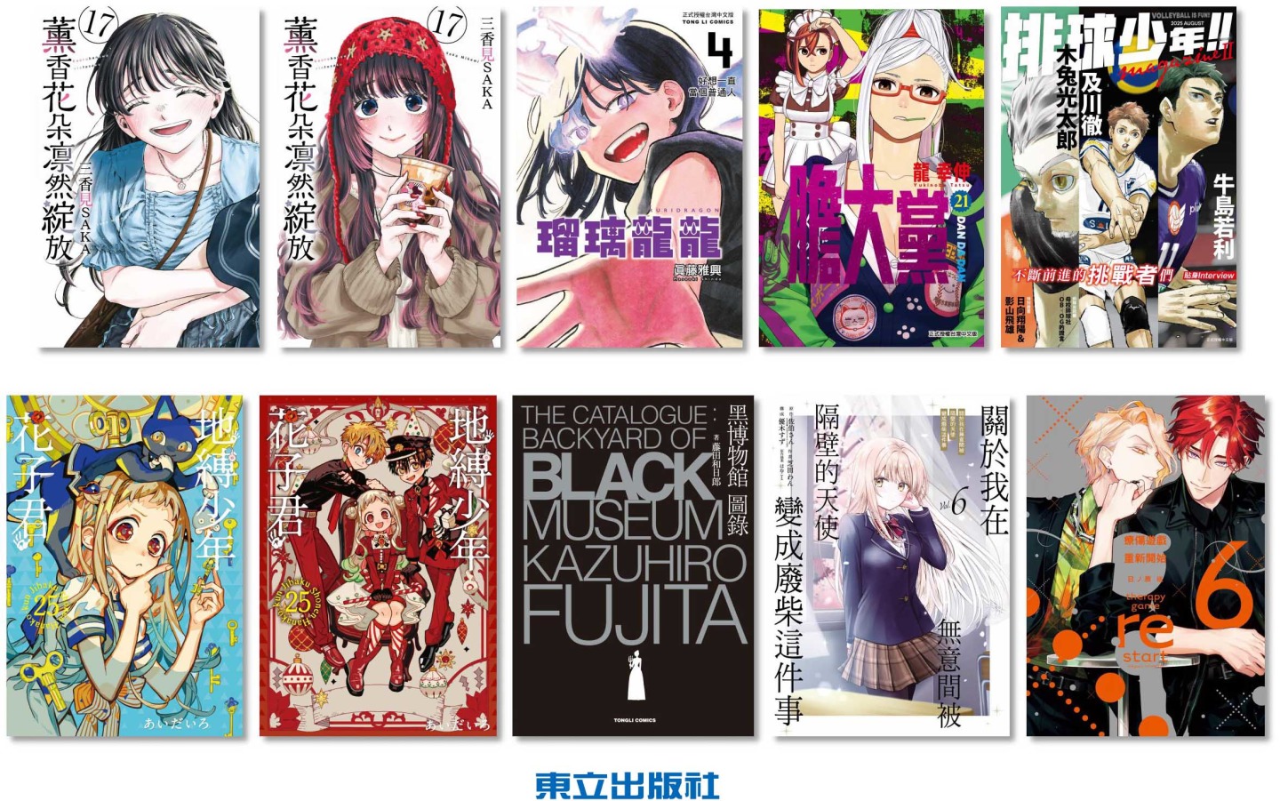 2026台中動漫節,東立將推出眾多主打新書與續刊。最受矚目的新作包含動畫開播後引發熱潮的超人氣漫畫,也是本次動漫節的簽名會作品——《薰香花朵凛然綻放》,將於動漫節推出第17集,其限定版封面是作者特別為台灣繪製的專屬封面,普通版封面則與日版相同,粉絲們千萬別錯過了!此外《地縛少年花子君》第25集的普限版本同樣也是不同封面,限定版還附有超豪華的聖誕降臨曆!另外,眾多讀者期待的《排球少年!!magazine》第2集、《瑠璃龍龍》第4集、《膽大黨》第21集、《關於我在無意間被隔壁的天使變成廢柴這件事》漫畫第6集和《療傷遊戲 重新開始》第6集也將在台中動漫節盛大上市!