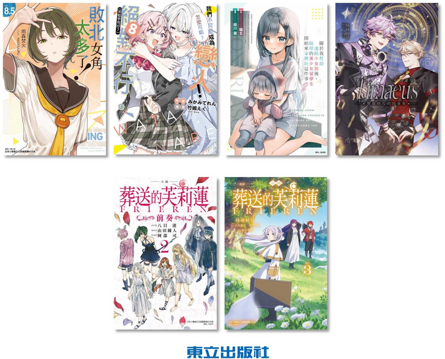 輕小說方面,動畫化超強作品《敗北女角太多了!》第8.5集和《我們不可能成為戀人!絕對不行。 (※似乎可行?)》第8集都將推出首刷限定版與豪華首刷限定版,超豐富的附錄等你來收藏喔!而VTuber團體「Timaeus諦覓司」的外傳小說《諦覓司:響徹終焉的四重奏》第1集也將盛大登場!矚目續刊《小說 葬送的芙莉蓮 ~前奏~》第2集、《小說 動畫 葬送的芙莉蓮》第3集與《關於我幫助迷路小女孩後,隔壁的美少女留學生開始來家裡玩這件事》第2集也都會在動漫節隆重上市!