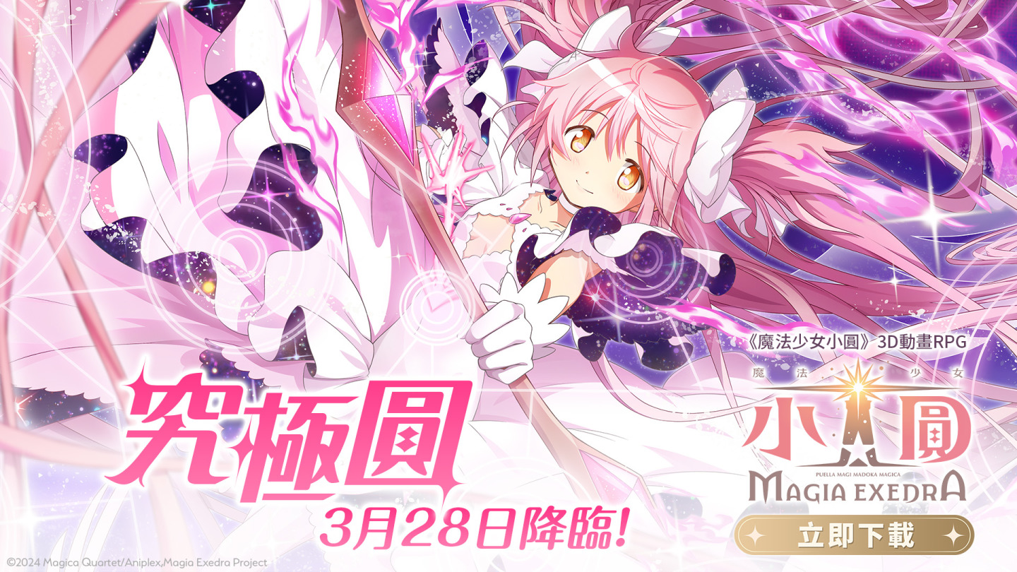 台灣碩網網路娛樂股份有限公司(So-net)於今(24)日宣布,旗下代理 3D 動畫 RPG 新作《魔法少女小圓Magia Exedra》將於 3 月 28 日迎來重量級版本更新。本次更新將推出無數玩家期盼的傳奇角色「再也不需要絕望了!究極圓」,同步將會開啟期間限定活動「Memories of you 前篇」。為此營運團隊除了準備每日免費轉蛋、魔法石和登入獎勵外,更推出全新挑戰活動,邀請魔法少女們進入由圓環之理重構的新世界。