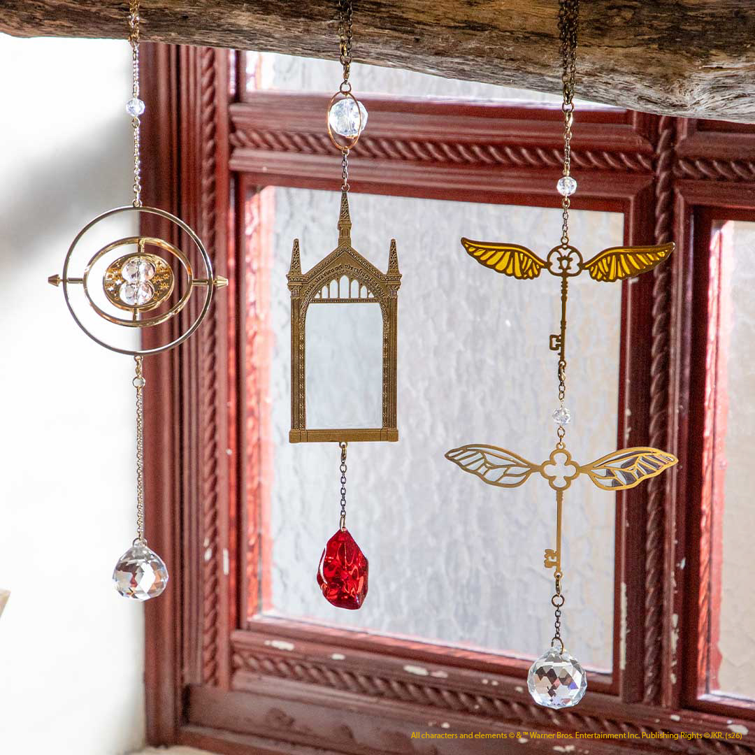 紀念上映25週年,Harry Potter – Mahou Dokoro將《哈利波特:神秘的魔法石》中的經典魔法道具化為「太陽捕手」系列商品,當陽光灑落時,折射出層次分明的光彩變化,展現宛如藝術品般的閃爍光彩。全系列共三款,「時光器」款靈感取自能夠回溯時間的重要道具,完整重現標誌性的沙漏造型及旋轉機關,象徵時間流轉的概念,當光線穿透時,光影彷彿隨之緩緩移動,細節充滿巧思;「飛行鑰匙」在作品中是保護魔法石而設置的考驗之一,該款式羽翼部分以精巧工藝呈現,隨角度變化展現動態光影,增添趣味與動感;「意若思鏡」款則以電影中映照內心渴望的神秘之鏡為靈感,鏡面造型在陽光折射下產生如同彩繪玻璃般的夢幻光影,像能窺見心中渴望的神奇鏡子。隨附扣環可靈活將其懸掛在天花板、牆壁、窗簾桿等位置,配件還可拆下來作為包包吊飾使用,讓魔法光影以多元形式融入日常。