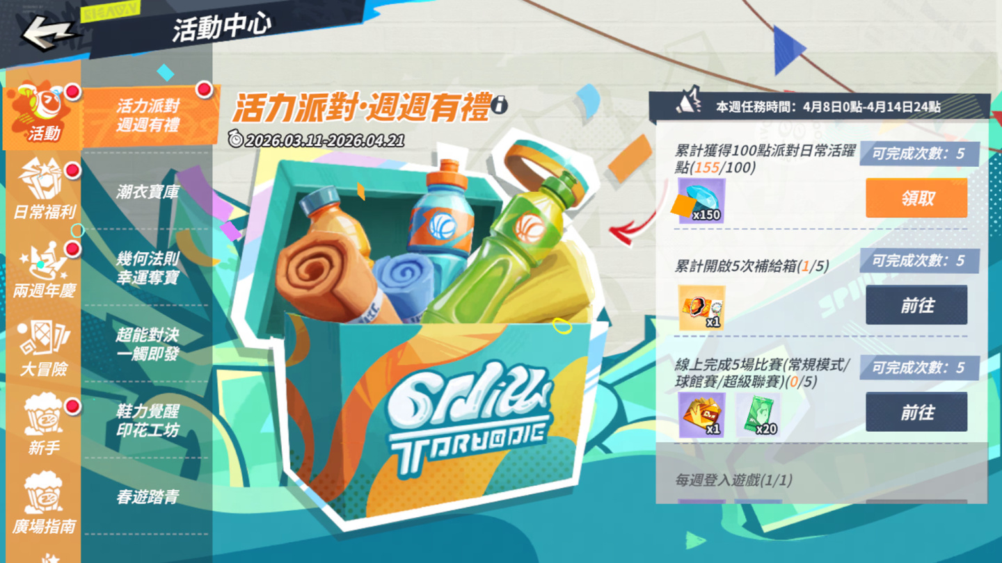 隨著春日降臨,「活力派對•週週有禮」活動將每週重置任務,持續派發巨星天賦卡自選包與潮人券。而「春暖花開」登入禮活動也相繼展開,街球手只需簡單登入即可領取招募券、鑽石等豐厚虛寶。此外,「世界巡迴賽」將帶領街球手回顧塞爾提克雙探花的登頂之路,體驗鐵血綠軍的傳奇篇章。