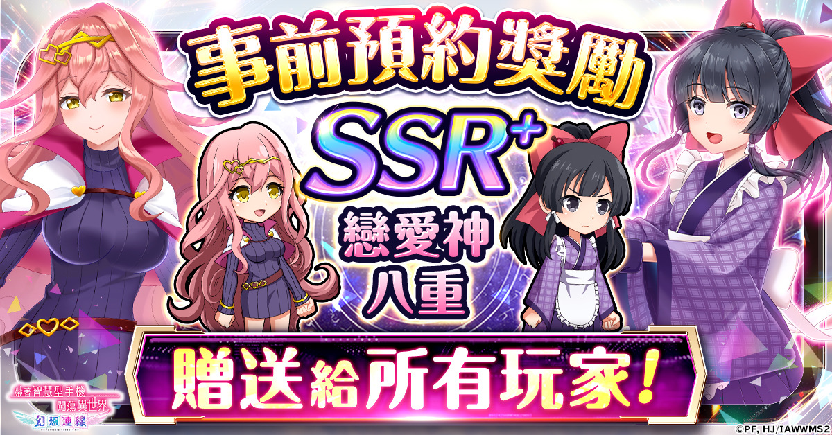 目前事前預約人數已突破10萬人,官方也確定將發送「SSR+戀愛神」與「SSR+八重」作為預約人數達成獎勵。即使現在才進行預約的玩家,在遊戲正式上線後也同樣可以領取這些獎勵。請把握機會參加事前預約,與眾多玩家一同展開異世界冒險!