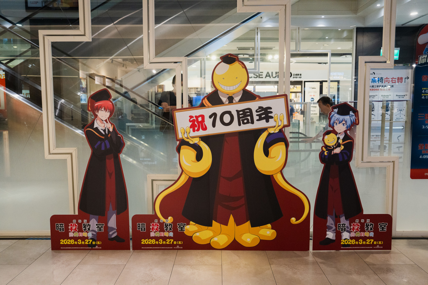 隨著電影上映,期間限定快閃店也同步登場。威秀影城除推出獨家電影套餐及電影海報組外,於3月27日至4月29日期間,在台北京站威秀影城、台中大魯閣新時代威秀影城及高雄大遠百威秀影城舉辦《暗殺教室》劇場版快閃店。現場除販售多款周邊商品外,也打造集結殺老師與全班同學的「10週年大合照」大型打卡牆,邀請粉絲與角色合影留念。