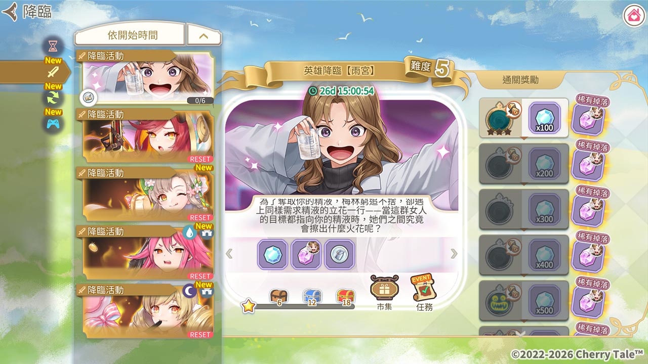 為了幫助魔王大人與女孩的羈絆更加親密,活動期間同步推出兩階段七日簽到活動,只要於指定活動期間每日登入遊戲,即可輕鬆領取豐富道具獎勵!《搾精病棟》合作活動為期間限定開放,想要體驗女孩們的淫威,務必把握機會!