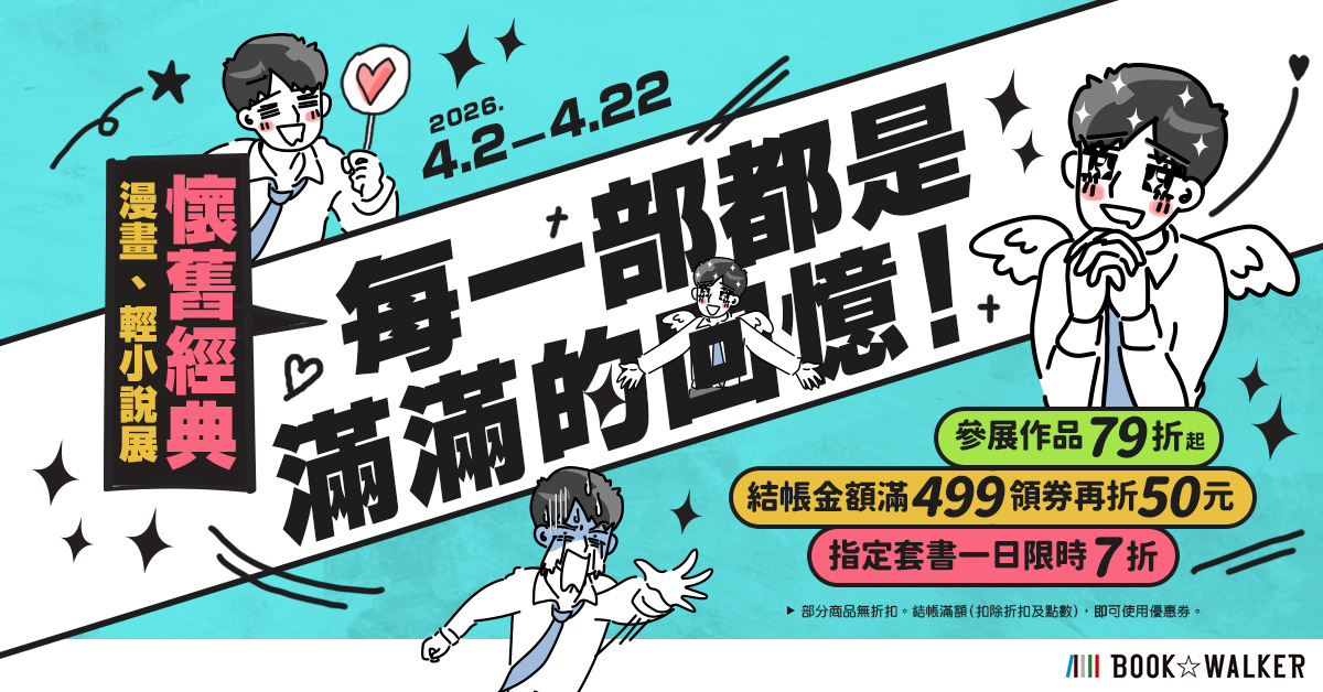 電子書平台 BOOK☆WALKER 推出「每一部都是滿滿的回憶!懷舊經典漫畫、輕小說作品展」。即日起至4月22日,參展作品79折起,活動頁可免費領取50元優惠券。4月9日還有一日限定7折優惠,碳酸系戀愛代表作《堀與宮村》全17冊於活動期間推出特價1,166元,適合讀者一次收藏完整套書。本次參展作品包含熱血神作《北斗之拳 新裝完全版》、機器人科幻名作《典藏版 地球防衛少年》、奇幻冒險《MAGI魔奇少年》以及酸甜戀愛喜劇《新裝版 100 % 的草莓》等經典作品。