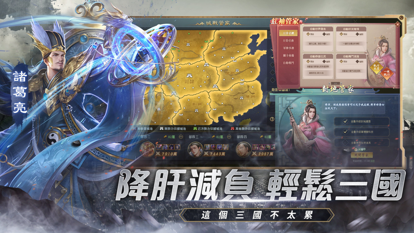 擁有端遊級唯美寫實畫風,並開創了沙盤征戰,結盟攻城爭霸等創新玩法。身臨經典的三國劇情,招募三國名將為自己所用,以你君主之才能排兵佈陣,與諸位亂世梟雄鬥智鬥勇,最終成就三國一統之偉業!