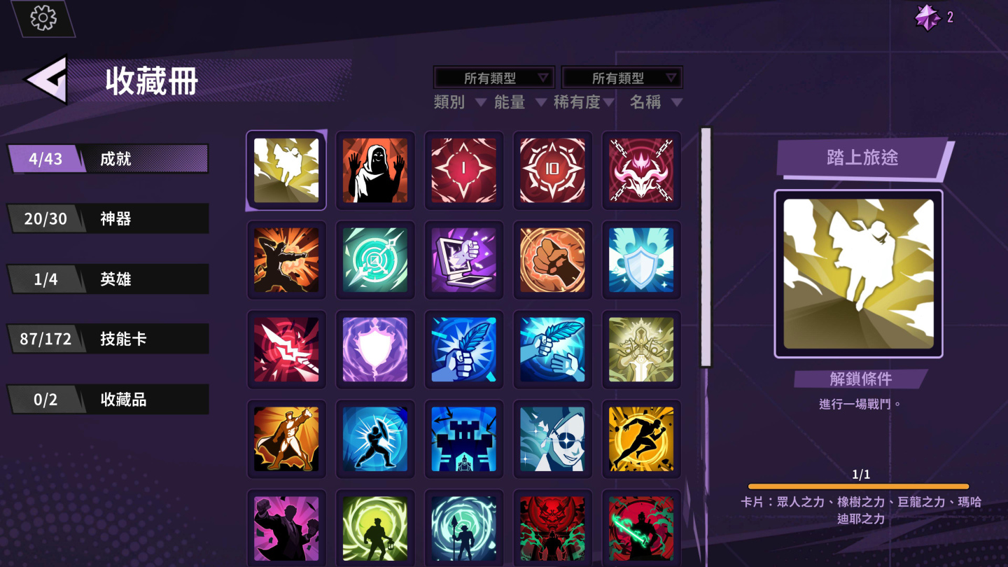 玩家可以根據當前的任務更清楚的知道下一階段會解鎖的新內容,並在收藏冊中檢視自己的任務進度,還有確認哪些成就可以挑戰。這些任務與成就除了能夠解鎖新英雄、新卡片外,還能開啟更多英雄的起始神器裝備,甚至一些特別的秘密關卡進入線索也隱藏在收藏冊中等待玩家發掘。《追尋者聯盟:英雄之旅》最新試玩版已於Steam推出,有興趣的玩家歡迎前往試玩。