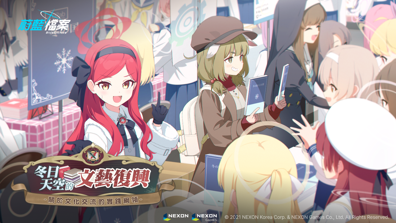 《蔚藍檔案》於4月7日改版推出全新活動劇情「冬日天空的文藝復興」,玩家們可以觀賞到「出版部」學生們在潛入「三一綜合學園」販售書本的過程中解開誤會,並尋找交流真正意義的故事;也將同步開啟總力戰「貓鬼黑影(城鎮戰)」。