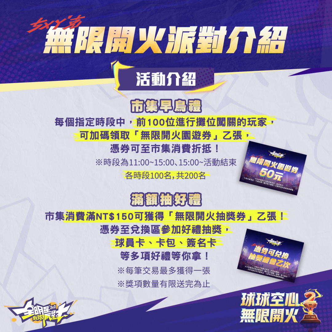 本次兩週年線下活動以「無限開火」為核心概念,打造讓所有到場玩家盡情投入、釋放壓力的街球派對。活動採全面開放設計,無論是資深玩家或一般觀眾皆可零門檻參與,涵蓋競技、娛樂到社交全方位體驗,共同打造一場真正屬於玩家的街球盛典。