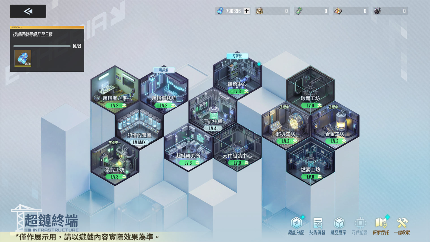 本賽季同步推出全新基地玩法「超鏈終端」。超鏈者協會打造全自動智能工廠,作為提升超鏈者與異格者聯合作戰能力的專屬支援系統,達到 30 級即可解鎖。在基地中,超鏈者可建設各類工坊,獲取異格者成長資源及刻影養成素材,用於提升角色與刻影的戰力。玩家還可派遣異格者完成各類任務,獲得藏品、完美晶格碎片等豐富資源,透過工坊布局與任務安排,自由規劃異格者養成與隊伍策略。