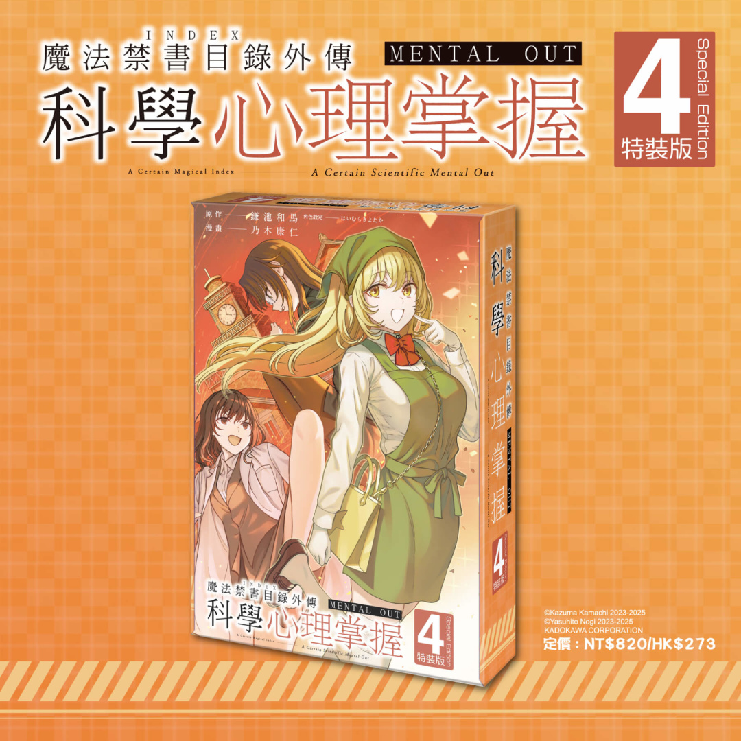 廣大「蜂」迷們久等了!系列累積銷量突破3,100萬冊的超人氣輕小說《魔法禁書目錄》外傳漫畫續作——《魔法禁書目錄外傳 科學心理掌握(4)》將於今年6月在台發售並同步推出收錄特典的「特裝版」,自即日起正式開放預購。