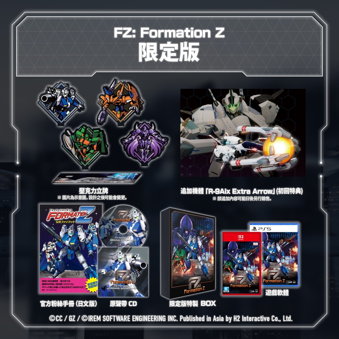 H2 Interactive 宣佈,將於 5月 21日正式發售由日本的遊戲開發商 CITY CONNECTION 與 1980 年代動作遊戲名家 JALECO 的代表作品《Formation Z》之完全重製版《FZ: Formation Z》PS5/Nintendo Switch 2 繁體中文版。另外,已開始預購實體一般版與限定版。《FZ: Formation Z》是一款變形機器人動作射擊遊戲。跨越80年代大型機臺與家用主機的時空,變形機器人射擊遊戲再次甦醒。靈活切換人型機器人與戰鬥機型態,運用全新武裝與動作,在戰場上橫掃千軍。