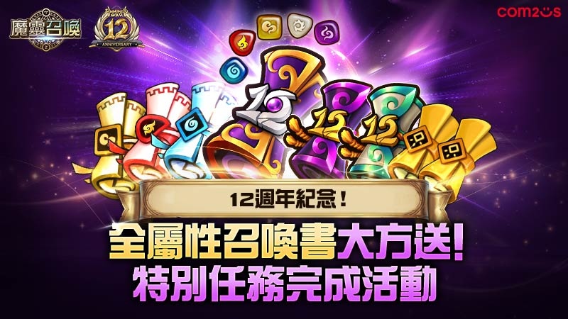 韓國手遊大廠 Com2uS 旗下經典大作《魔靈召喚》歡慶 12 週年,地表最強慶典現正引爆中!現在登入不僅能直接「自選 5 星魔靈」,官方更豪氣豪撒全屬性 200 抽,力拼夢幻光暗神角!此外,今年重磅推出全新「12 週年傳說召喚書」,除保證召喚 4 星以上,更自帶雙重祝福效果,直接魔靈二選一!入坑回鍋、競逐巔峰就是現在!