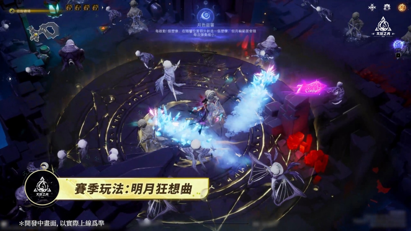 SS12賽季玩法【明月狂想曲】將回歸最爽快直接的局內刷圖玩法,玩家可在異界地圖中遭遇月石塑像群,使用賽季互動按鈕彈奏月輪將範圍內的塑像喚醒,擊敗它們即可獲得豐厚掉落物,每一次性喚醒的塑像越多,更能給予更高的掉落數量加乘!