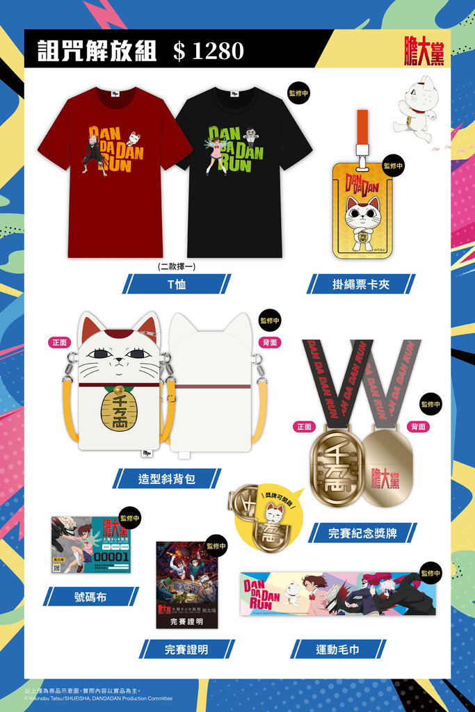詛咒解放組(售價1280元):掛繩票卡夾、造型斜背包、T恤、號碼布、運動毛巾、完賽紀念獎牌、完賽證明