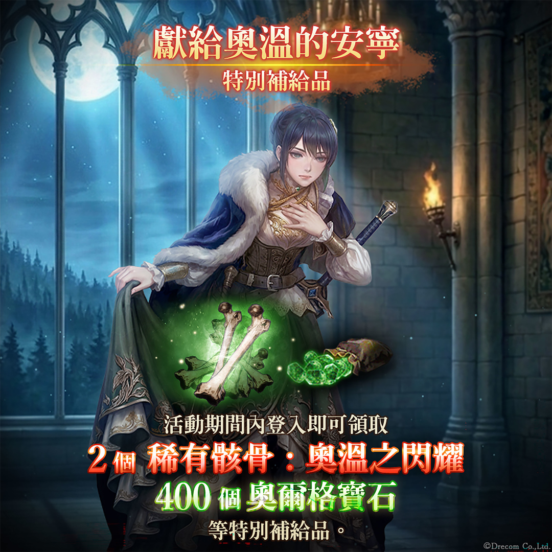活動期間內登入即可領取合計2個「稀有骸骨:奧溫之閃耀」、400個奧爾格寶石等特別補給品。