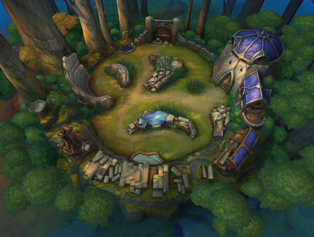 先祖林地是一張獨特的地圖,它不僅是我們最小的競技場,也是唯一一個只有一朵力量之花的競技場。我們想保留較小的競技場這個元素,但也認為強迫玩家爭奪一朵力量之花並不是個理想的設計。