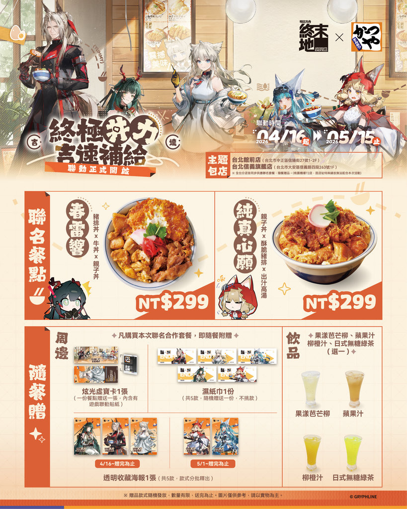 由鷹角網路出品的3D即時策略RPG《明日方舟:終末地》今(16)日宣布,將與知名連鎖豬排品牌「吉豚屋」合作推出期間限定聯動活動。自4月16日至5月15日於台灣指定門市展開,除了美味的聯名套餐外,更規劃了多項趣味任務與快閃主題活動日,邀請玩家一同共襄盛舉。
