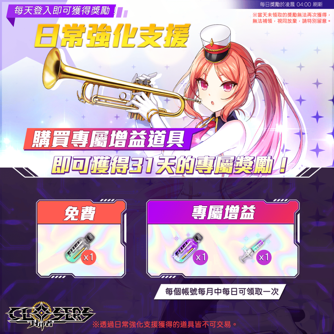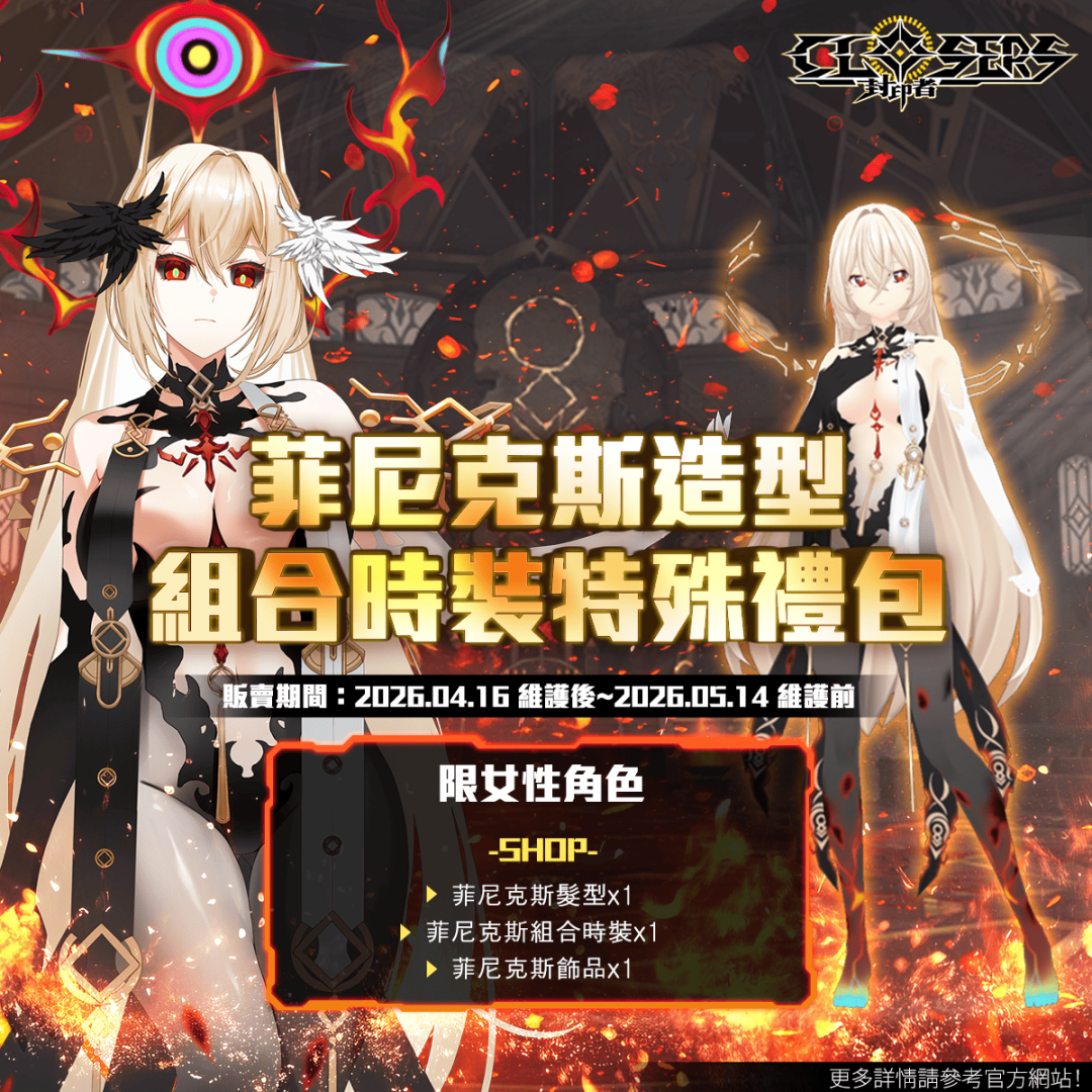 在時裝方面,多項全新與回歸內容同步上架,包括限時登場的「淚滴華爾滋時裝」,以及「菲尼克斯造型時裝」特殊組合禮包。同時,「新手/回歸禮包」限時販售,協助新進與回鍋玩家快速銜接遊戲進度;「每月禮包」亦進行全面改版,提供更具價值的內容配置。此外,「日常強化支援」活動同步推出,進一步強化玩家日常養成效率。