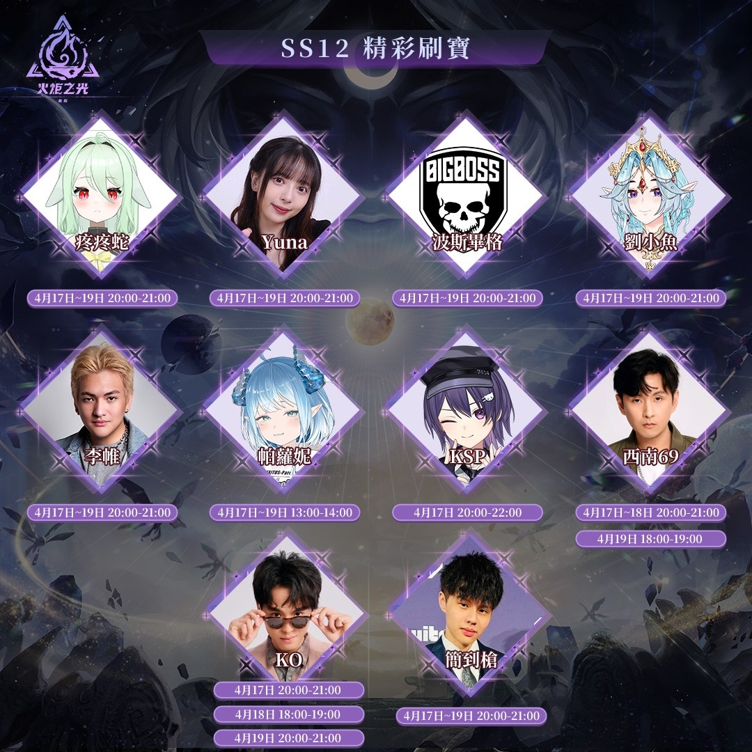 隨著SS12賽季開啟,全台眾多實況主同步加入拓荒行列並開啟直播,帶領玩家一同體驗全新賽季內容。不同風格的實況內容,從角色構築到刷圖節奏,提供玩家多元的遊玩視角與參考方向。