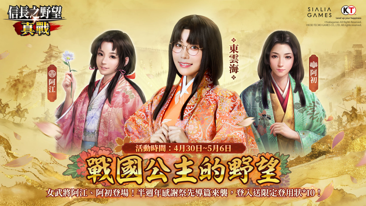 《信長之野望真戰》半週年感謝祭先導篇將於4月30日正式啟動,誠邀所有玩家一同見證「戰國公主的野望」,並在戰國亂世中書寫屬於自己的野心篇章。