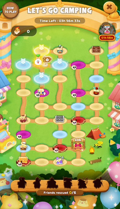 在活動中可以自己決定路徑,努力通過關卡幫助迷路的朋友,一起邁向終點的露營場吧!救出的朋友越多,可獲得的獎勵就越豪華,詳細的獲得條件,請參考遊戲內公告。