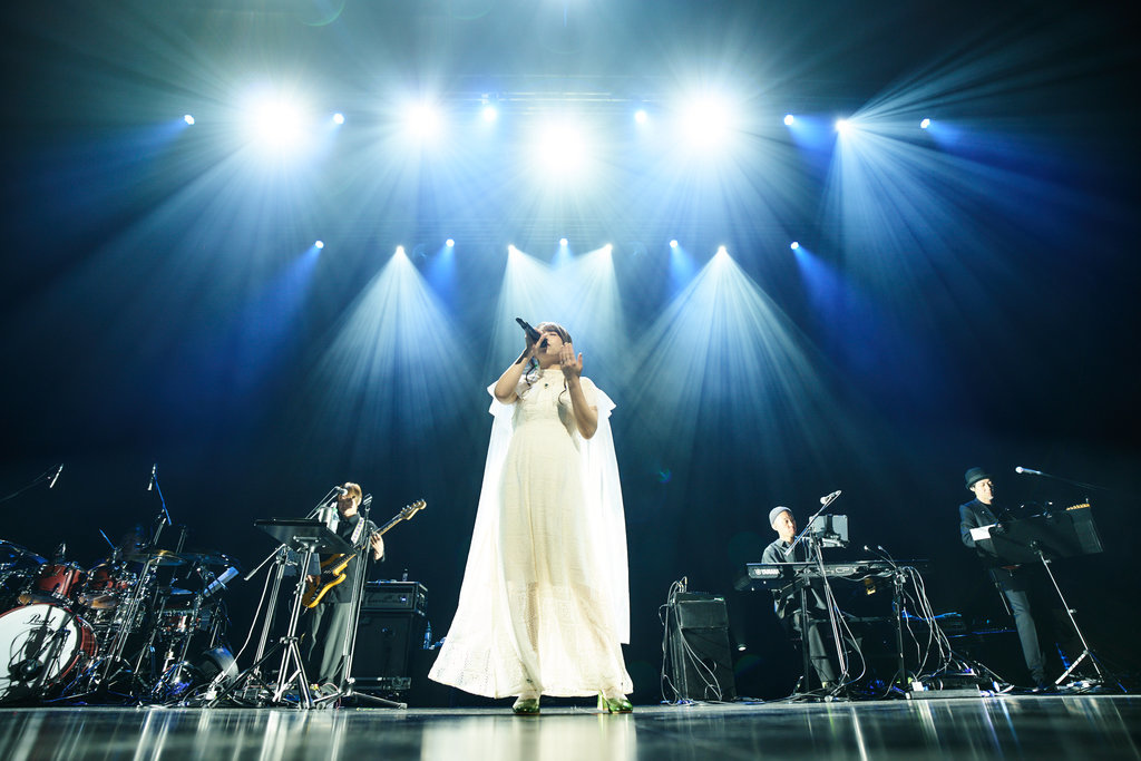她用中文跟台下打招呼,並在演出中化身遊戲角色「Konagi」,引導全場歌迷一起進入夢境,隨著舞台後方LED螢幕不時閃現遊戲視窗的提示與引導,以演唱曲目逐步建立起完整的敘事軸線,讓台下歌迷在聆聽之餘,也能隨著音樂推進情節發展,拼湊出隱藏於歌聲背後的故事。