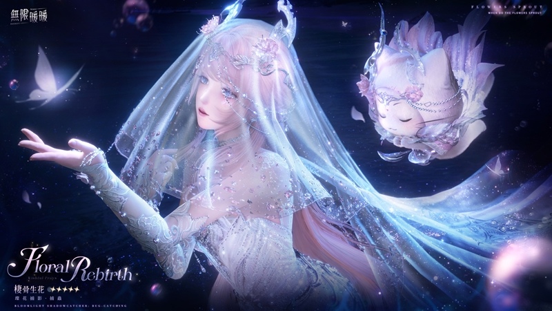 •五星套裝「棲骨生花」:屬性清新, 具有【璨花捕影•捕蟲】能力。配置後可進行大範圍極速捕蟲,使採集過程更為流暢。共鳴達160次可領取「深海瑩輝禮盒」,解鎖在大世界翩翩起舞的專屬舞蹈與動作。套裝支援多部件款型切換,三階進化後可獲得妝容「凋零之嘆」及進化特效。