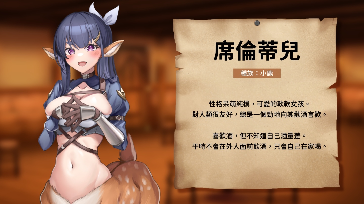 在這座充滿歡笑與驚喜的異世界餐酒館,不同種族的居民們共享美酒佳餚。精靈、哥布林、狐娘、蜘蛛娘...你將在此與七位各具獨特魅力的魔物娘邂逅,透過推酒杯、射飛鏢、翻牌等小遊戲與她們對決,逐步建立情感上的羈絆,在酒精帶來的微醺助興下,釋放內心的壓力與渴望!