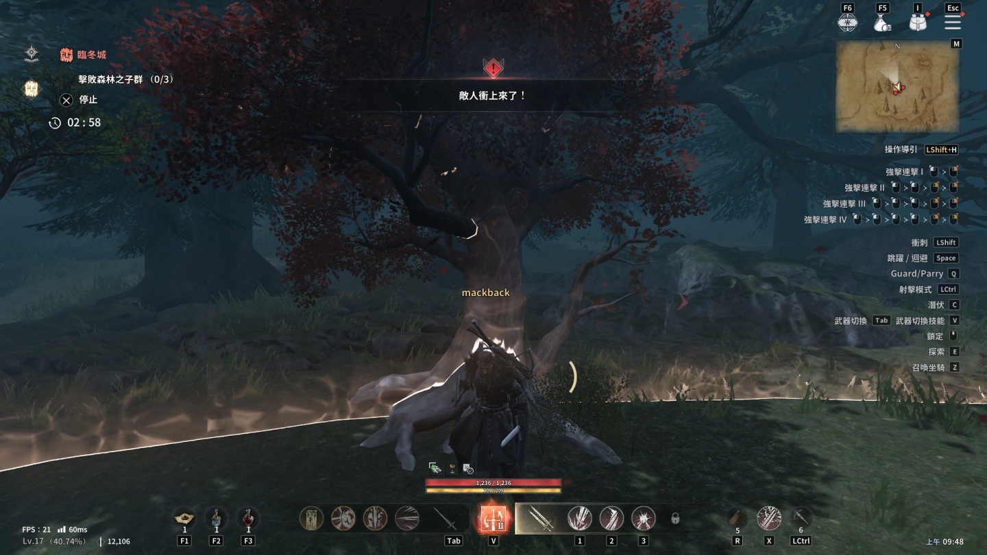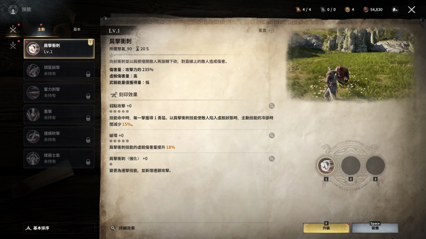 以筆者所選的騎士來說,雙手劍的攻擊範圍廣泛,也有不錯的防禦效果,第二種武器雙劍則是能施展快速連擊殺的敵人措手不及,每種武器都有多種對應技能,隨著等級提升就能用獲得的點數來強化技能;這裡筆者比較建議選擇手把來進行遊戲,不管是打擊敵人時的手感和反饋遠比鍵盤滑鼠來的有感,加上戰鬥部分多少有點類似魂系遊戲的打法,有些 BOSS 會累積怒氣值施放強大的攻擊,如果貪刀的話下場不是打殘就是死。