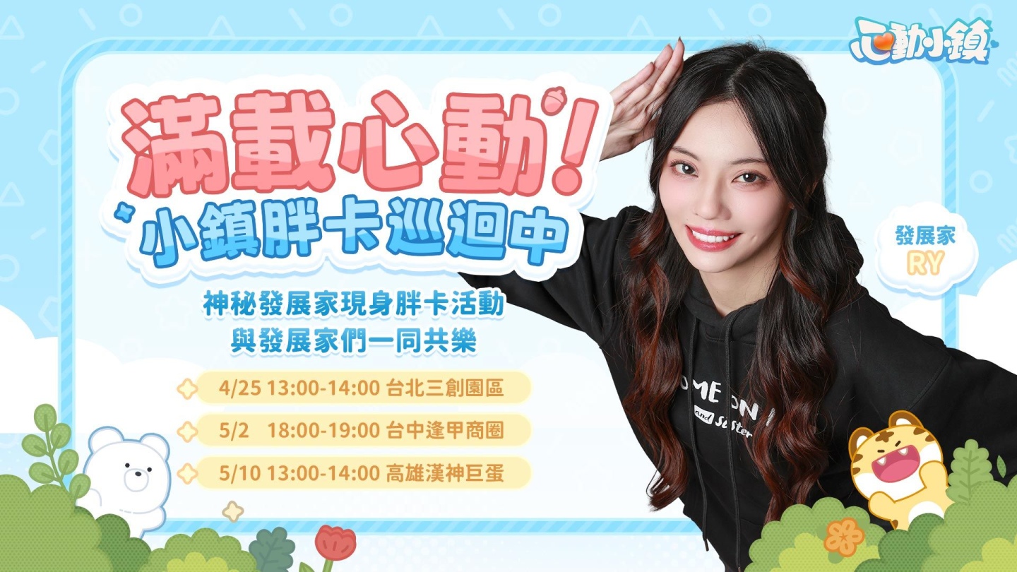 出發啦!4月25日起連續三個週末假期,《心動小鎮》將展開北中南線下活動,載滿幸福的「心動小鎮胖卡」將於台北三創生活園區、台中逢甲商圈、高雄漢神巨蛋等地點與發展家見面,邀請喜愛小鎮的粉絲們共襄盛舉。