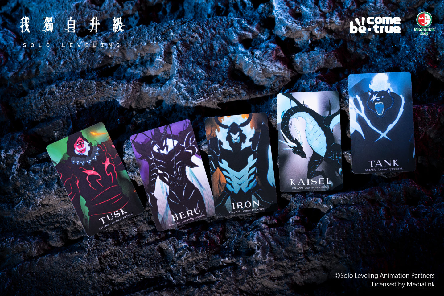 這次,Be come true 完美復刻邪神石像的外型,從一尊碩大陰森的雕像縮成一手掌握大小的立體一卡通,搭載晶片感應功能,雙眼瞬間發出懾人紅光,魔性微笑令人不寒而慄,因造型過於逼真,引發網友熱議:「嗶個卡膝蓋會自動軟掉」、「是不是下跪才能儲值?」;除了造型卡,同步登場的「盲包一卡通」更是獵人們的戰場!共 16款,除劇中人物與「闇影軍團」等14個經典角色外,其中2款是稀有的「炫光隱藏版」,無論是哪一種一卡通都能滿足想收藏《我獨自升級》的粉絲。