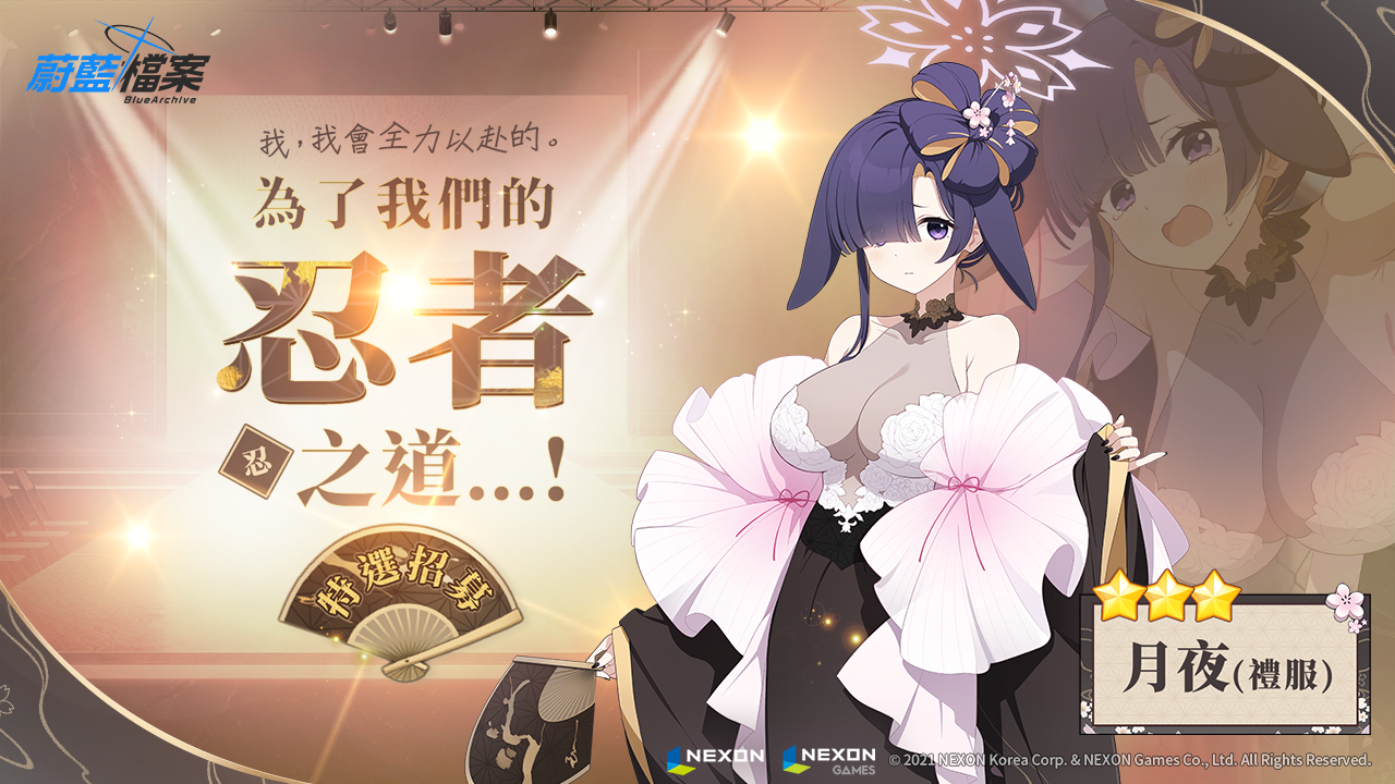 「月夜(禮服)」則是貫穿攻擊類型的坦克,「EX技能:忍者,絕不退縮!」能夠生成掩蔽物,並在30秒期間增加攻擊速度,讓老師們可以有戰略性地進行戰鬥。