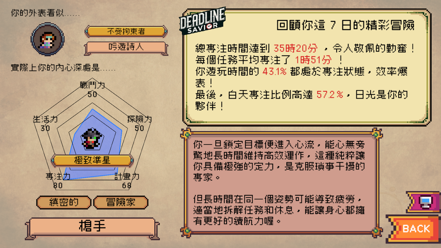 《死線勇者》是一款專為遠端/電腦工作者、創作者與死線戰士設計的生產力 RPG。遊戲融合番茄鐘時間管理工具,讓玩家在現實中每完成一段專注工作的時間,就能在遊戲中自動展開一次戰鬥冒險。