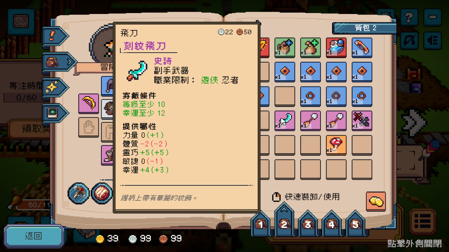 。回城捲軸實裝,可以隨時飛回城鎮補給物資和販售戰利品。