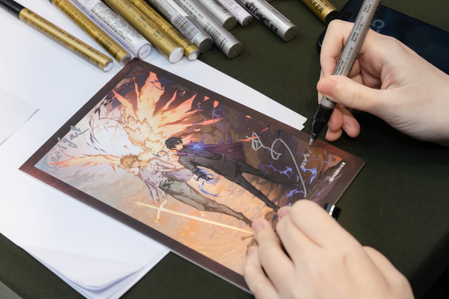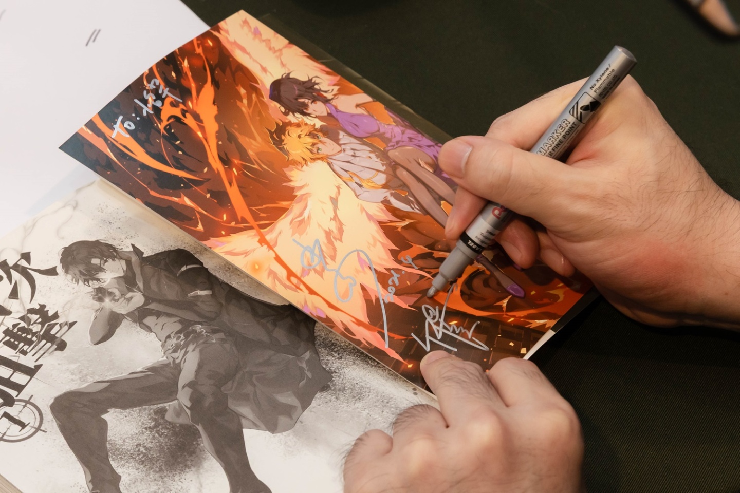 本次活動台灣角川特別準備來場特典海報,贈送給到場參與的讀者,水泉老師也特別請竹官老師繪製新圖,並印製簽名小卡於現場贈送給粉絲。簽名環節中,水泉老師與竹官老師親切地為每位讀者簽名,現場粉絲也熱情回應,表達對兩位老師作品的支持與喜愛,整場活動在熱烈而溫馨的氛圍中圓滿落幕。