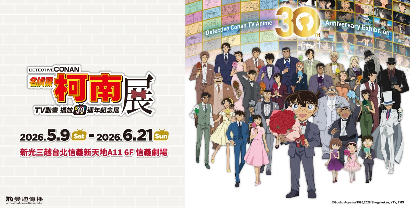 風靡多年的《名偵探柯南》電視動畫邁入30年了!為歡慶這值得紀念的里程碑,正於日本巡迴展出的「《名偵探柯南》TV動畫播放30週年紀念展」將於5/9正式於新光三越台北信義新天地A11登場!這也是本展覽首次於海外正式展出!本活動將邀請台灣的粉絲們,一起走進柯南的世界,揭開動畫幕後創作的真相。