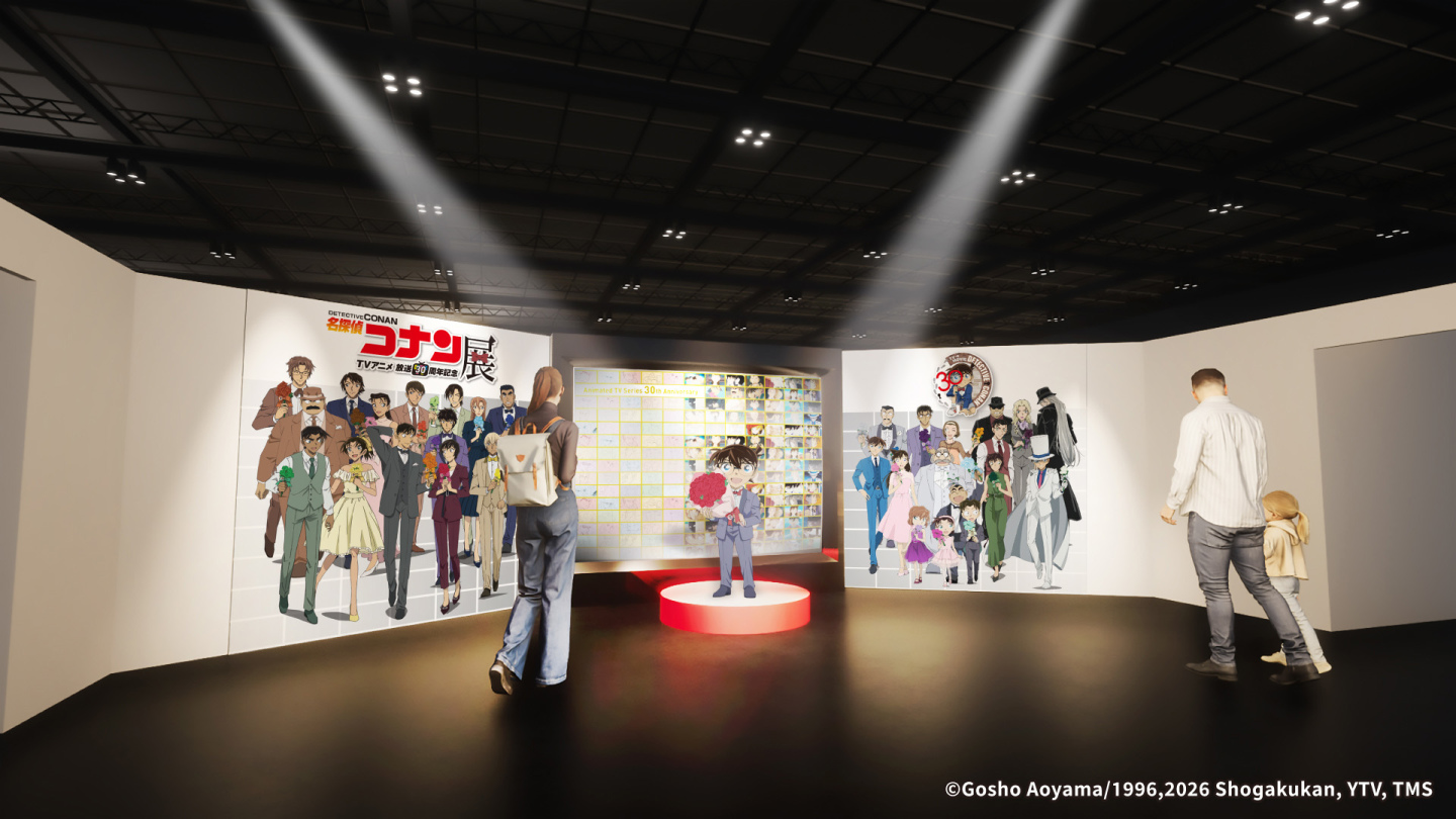 「《名偵探柯南》TV動畫播放30週年紀念展」將著重於動畫後製幕後工作,從最初的企畫、分鏡、作畫、配音到主題曲等,讓粉絲了解動畫建構的過程。展區入口即可看到柯南與眾多角色們一起迎接粉絲的到來~